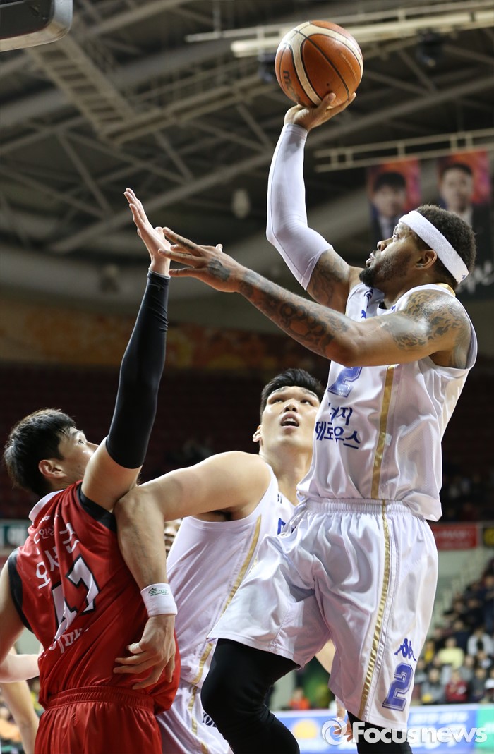 (안양=포커스뉴스) 13일 안양실내체육관에서 열린 2015-2016 프로농구 KGC-KCC 경기에서 KCC 안드레 에밋이 원핸드슛을 시도하고 있다.