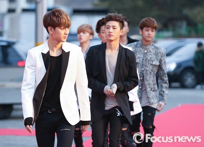 (서울=포커스뉴스) 14일 오후 서울 송파구 올림픽 체조경기장에서 열린 '25회 하이원 서울가요대상' 시상식에 참석한 아이돌그룹 아이콘의 멤버들이 레드카펫위를 걷고 있다.