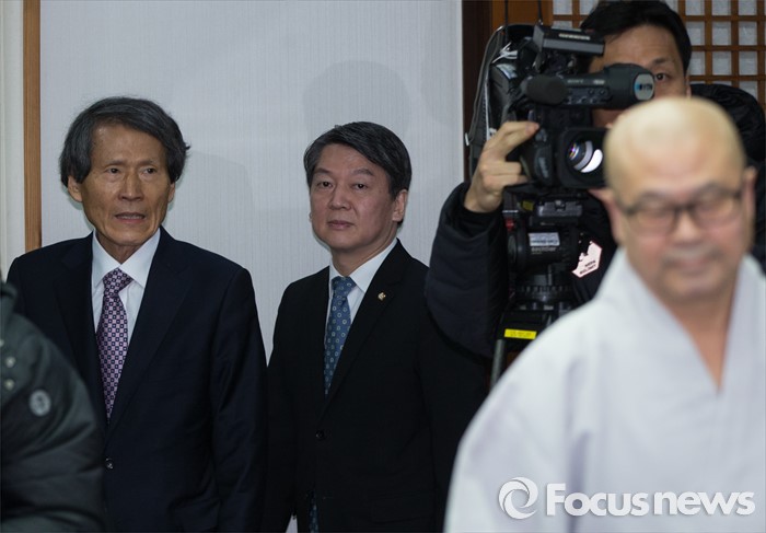 (서울=포커스뉴스) 15일 오전 '국민의당' 안철수 의원과 한상진 창당준비위원장이 자승 총무원장을 만나 새해 인사를 하기위해 서울 종로구 조계사 경전 내에 있는 한국불교역사문화기념관을 들어서고 있다.