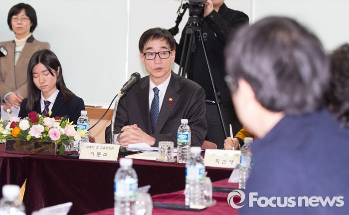 (세종=포커스뉴스) 이준식 사회부총리 겸 교육부장관이 15일 오전 세종시 조치원여자중학교에서 열린 자유학기제 현장간담회에 참석해 인사말을 하고 있다.