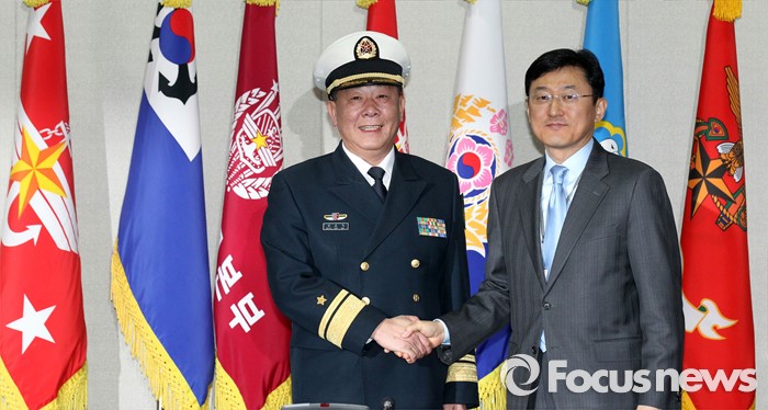 (서울=포커스뉴스) 한국군과 중국군 당국이 북한의 4차 핵실험 도발에 대한 대응 방안을 논의하기 위해 15일 오전 서울 국방부에서 '제15차 한·중 국방정책실무회의'를 개최, 윤순구 국방부 국제정책관과 관요페이 중국 국방부 외사판공실 주임이 악수를 하고 있다.
