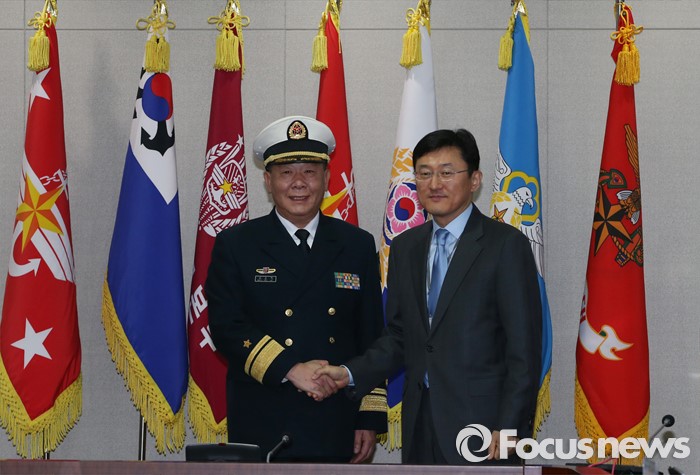 (서울=포커스뉴스) 한국군과 중국군 당국이 북한의 4차 핵실험 도발에 대한 대응 방안을 논의하기 위해 15일 오전 서울 국방부에서 '제15차 한·중 국방정책실무회의'를 개최, 윤순구 국방부 국제정책관과 관요페이 중국 국방부 외사판공실 주임이 악수를 하고 있다.