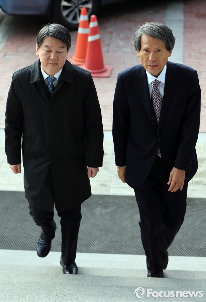 (서울=포커스뉴스) 함께 걷는 안철수-한상진 무소속 안철수 의원(왼쪽)이 15일 오전 자승 조계종 총무원장을 예방하기 위해 서울 종로구 견지동 조계사 한국불교역사문화기념관에 도착, 한상진 국민의당 창당준비위원장과 이동하고 있다.