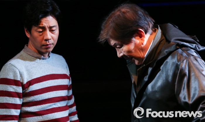 (서울=포커스뉴스) 15일 오후 서울 종로구 예그린씨어터에서 열린 연극 '박웅의 수상한 수업' 프레스콜에 참석한 배우 박준(왼쪽)과 박웅이 공연을 선보이고 있다.