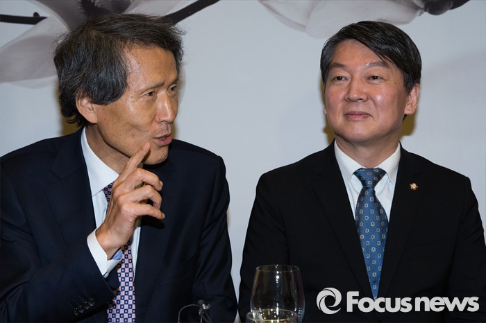 (서울=포커스뉴스) 한상진(왼쪽) 국민의당 창당준비위원장이 15일 오후 서울 관악구 한 태국 식당에서 진행된 故 김대중 전 대통령 재임 당시 자문정책기획위원회 모임에 참석해 모두발언 하고 있다.