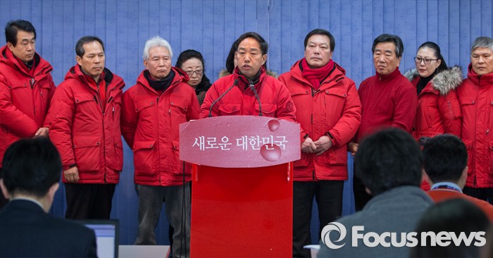 (서울=포커스뉴스) 안대희 전 대법관이 서울 마포(갑) 출마 선언을 한 17일 오전, 서울 여의도구 새누리당 당사에서 강승규 새누리당 마포갑 당협위원장이 안 전 대법관을 지탄하는 기자회견을 하고 있다.