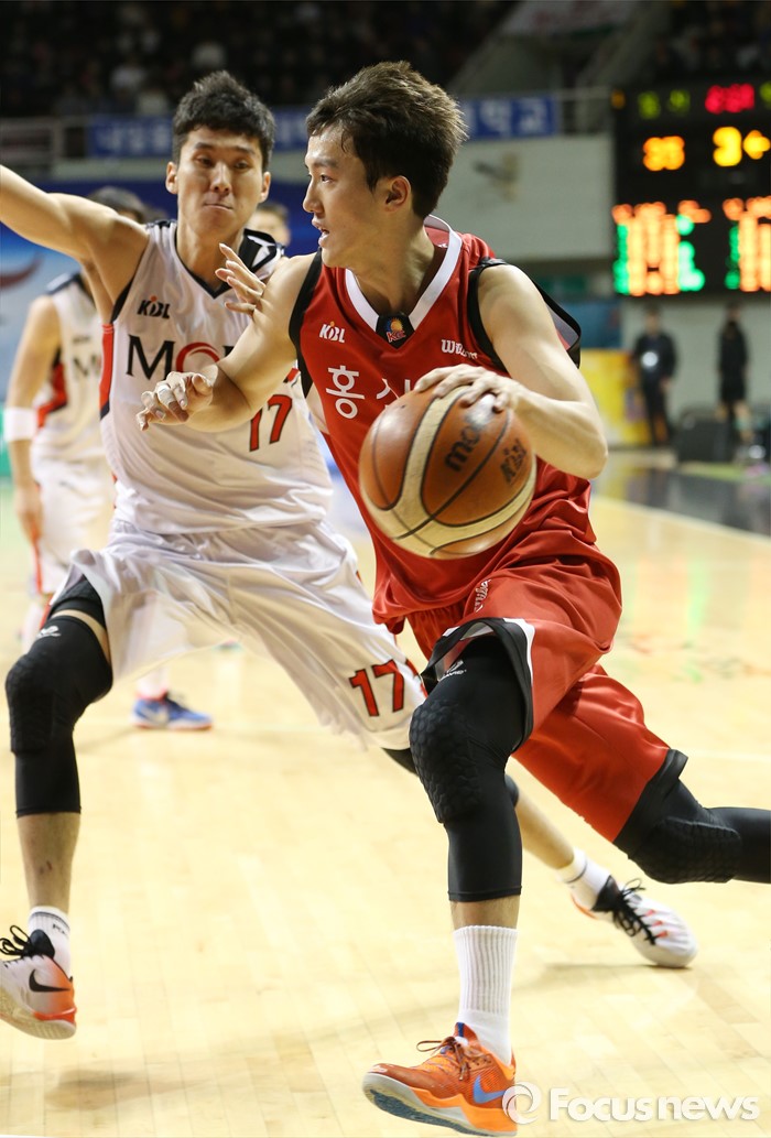 (안양=포커스뉴스) 17일 안양실내체육관에서 열린 2015-2016 프로농구 KGC-모비스 경기에서 KGC 박찬희가 모비스 전준범의 마크를 받으며 골밑으로 대시하고 있다.