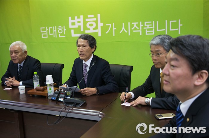 (서울=포커스뉴스)국민의당(가칭) 한상진(왼쪽 두번째) 창당준비위원장이 18일 오전 서울 마포구 국민의당 당사에서 열린 기조회의에 참석, 발언하고 있다.