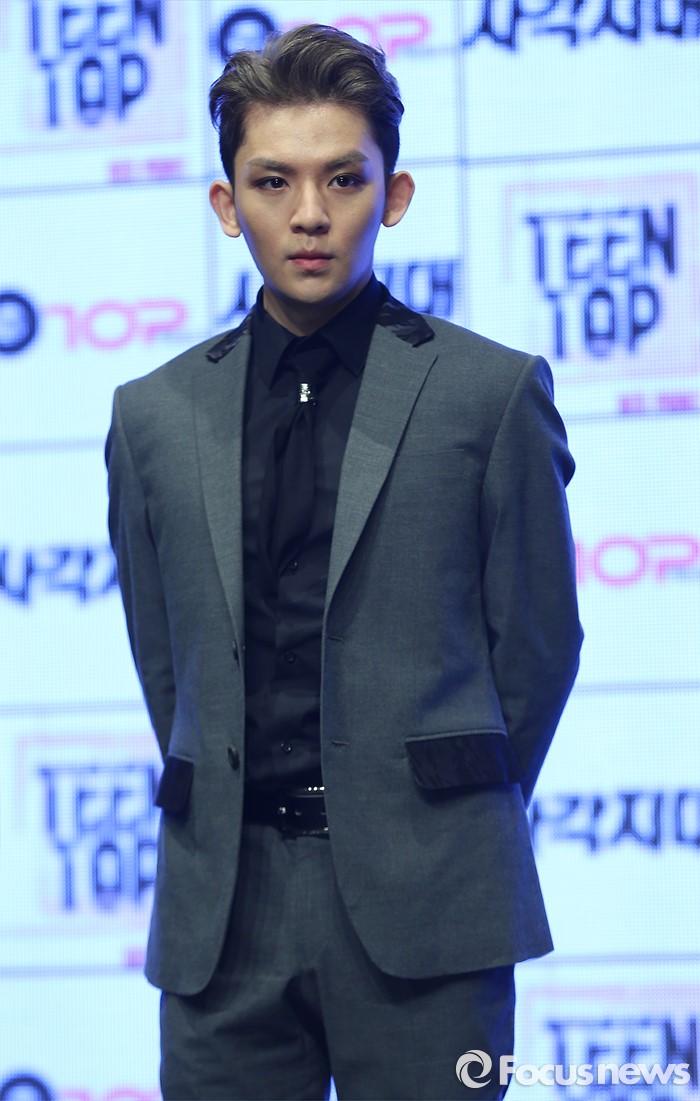 (서울=포커스뉴스) 18일 오전 서울 강남구 일지아트홀에서 열린 아이돌 그룹 틴탑의 미니앨범 'RED POINT' 쇼케이스에 참석한 멤버 리키가 포토타임을 갖고 있다.