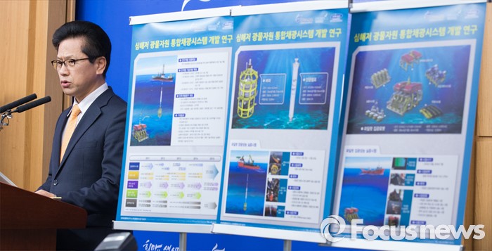 (세종=포커스뉴스) 연영진 해양수산부 해양정책실장이 18일 오전 세종시 정부세종청사 해수부 기자실에서 브리핑을 열고 심해저에서 채집된 망간단괴를 파이프를 이용해 수면 위 채광선으로 이송하기 위한 시스템(양광시스템)을 개발, 해상 실증시험에 성공했다고 밝히고 있다.