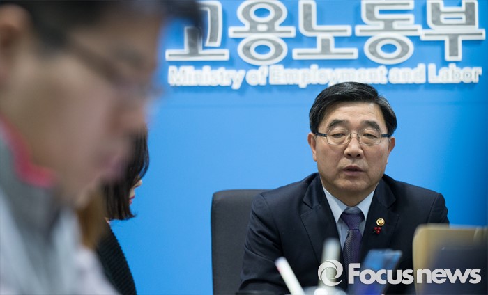 (세종=포커스뉴스) 이기권 고용노동부장관이 18일 오전 세종시 정부세종청사 고용부 기자실을 방문, 출입기자들과 간담회를 갖고 노동현안에 대해 질문에 답변하고 있다.
