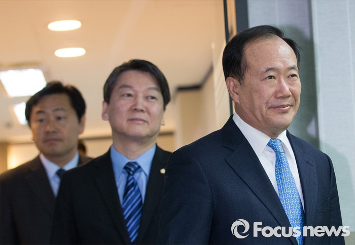 (서울=포커스뉴스) 국민의당(가칭) 창당준비위원회가 19일 오전 서울 마포구 당사 브리핑룸에서 국민의당 새 참여 인사로 김봉수 전 키움증권 부회장을 영입한다고 밝혔다. 안철수 인재영입위원장(가운데)과 김봉수 전 부회장이 브리핑룸을 들어서고 있다.