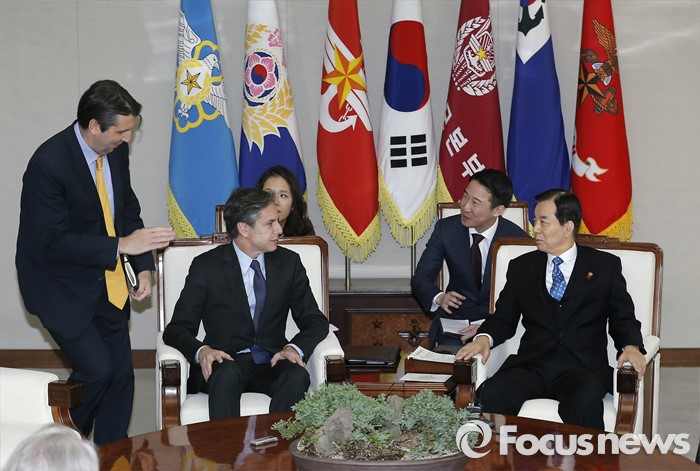 (서울=포커스뉴스) 20일 오전 서울 국방부에서 한민구 장관과 토니 블링큰 미 국무부 부장관이 북한의 제4차 핵실험에 대한 평가와 함께 한·미 양국의 공조 방안 등을 논의하고 있다. 맨 왼쪽은 마크 리퍼트 주한미대사.