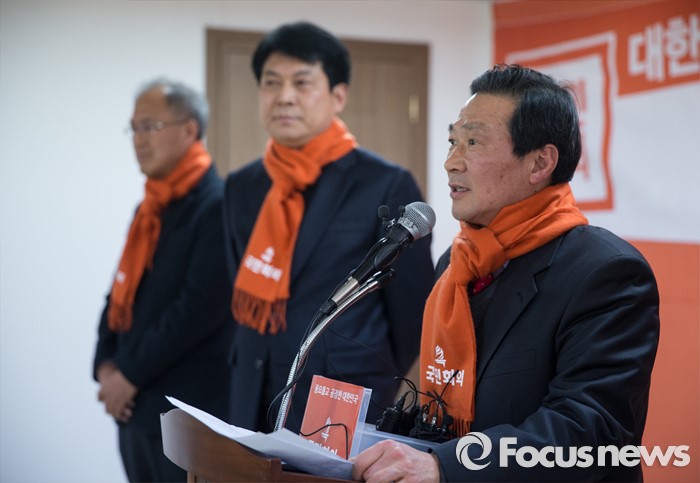 (서울=포커스뉴스) 20일 오후 서울 여의도 당사에서 열린 국민회의 인재 입당식에서 국민회의에 입당한 김명원 월드에너지 상무이사가 인사말을 하고 있다.