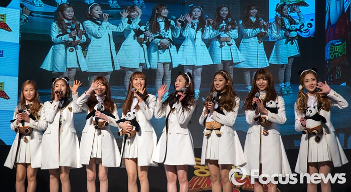 (서울=포커스뉴스) 20일 오후 서울 영등포구 타임스퀘어에서 열린 할리우드 애니메이션 '쿵푸팬더 3' 레드카펫 행사에 참석한 그룹 러블리즈가 인사하고 있다.
