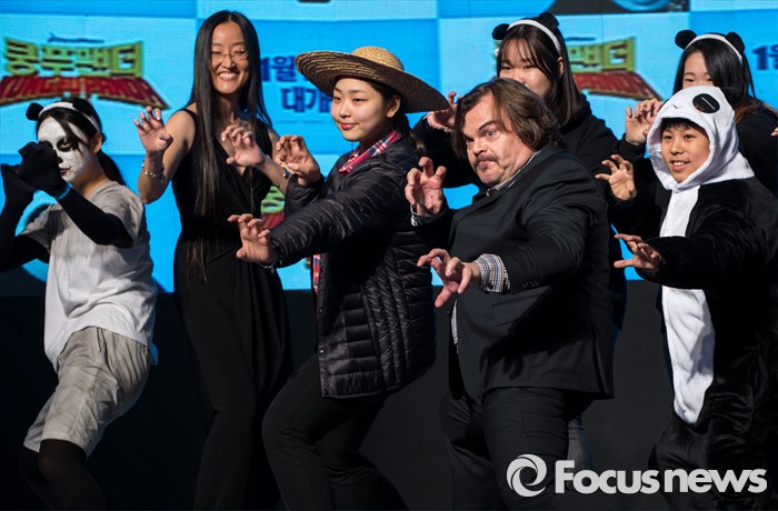 (서울=포커스뉴스) 할리우드 애니메이션 '쿵푸팬더 3' 홍보차 내한한 배우 잭 블랙이 20일 오후 서울 영등포구 타임스퀘어에서 열린 레드카펫 행사에 참석해 팬들과 포즈를 취하고 있다.