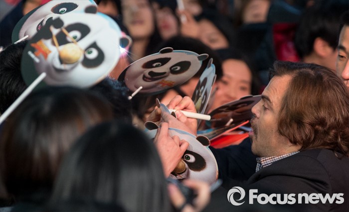 (서울=포커스뉴스) 할리우드 애니메이션 '쿵푸팬더 3' 홍보차 내한한 배우 잭 블랙이 20일 오후 서울 영등포구 타임스퀘어에서 열린 레드카펫 행사에 참석해 팬들에게 사인해주고 있다.