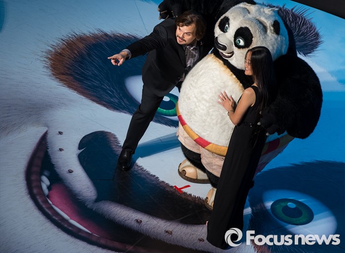 (서울=포커스뉴스) 할리우드 애니메이션 '쿵푸팬더 3' 홍보차 내한한 배우 잭 블랙과 여인영 감독이 20일 오후 서울 영등포구 타임스퀘어에서 열린 레드카펫 행사에 참석해 포즈를 취하고 있다.