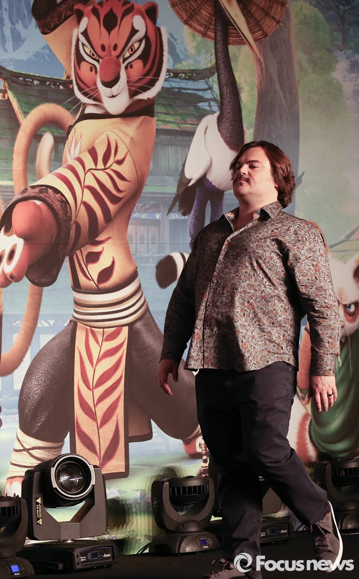 (서울=포커스뉴스) 21일 오전 서울 영등포구 콘래드 서울호텔에서 열린 쿵푸팬더3 기자간담회에 참석한 배우 잭 블랙이 포토타임을 위해 이동하고 있다.