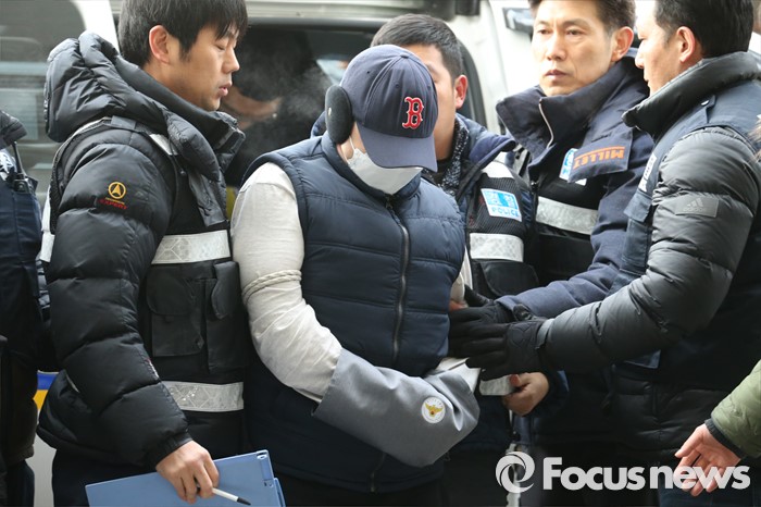 (부천=포커스뉴스) 부천 초등생 살해사건의 2차 현장검증이 실시된 21일 오전 피의자의 전 거주지로 알려진 부천 원미구 한 빌라에 피의자 최모 (33)씨가 범행 상황을 재연하기 위해 들어서고 있다.