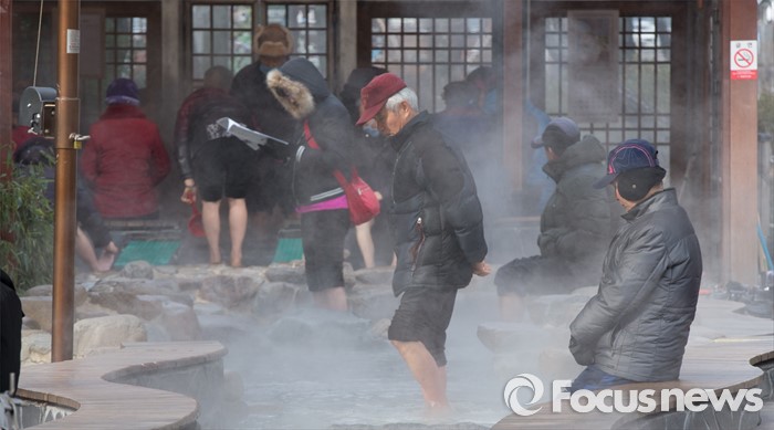 (대전=포커스뉴스) 절기상 대한인 21일 오전 대전 유성구 족욕체험장에서 영하의 강추위에도 불구하고 시민들이 온천수에 발을 담그고 몸을 녹이고 있다.