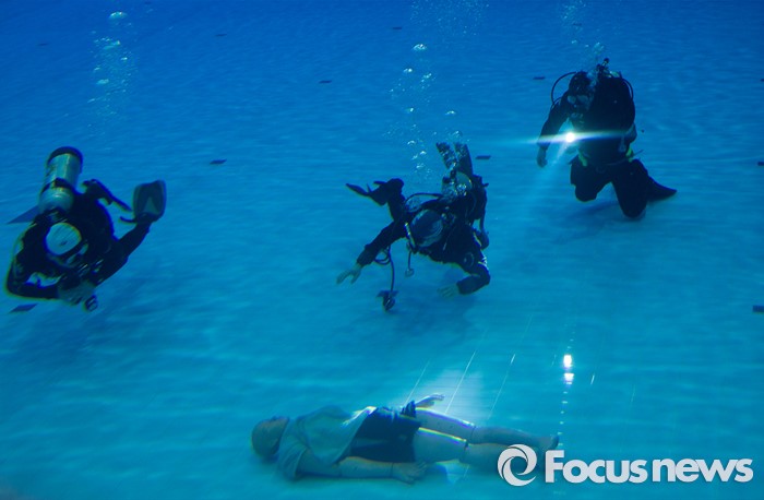 (대전=포커스뉴스) 21일 오후 대전 동구 용운국제수영장에서 충북 영동소방서 구조대원들이 동계 수난사고 인명구조훈련을 실시하고 있다.