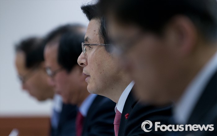 (서울=포커스뉴스) 21일 오후 서울 중구 한화 본사를 방문한 황교안 국무총리가 노동개혁과 관련해 현장 노사와의 대화 시간을 갖고 있다.