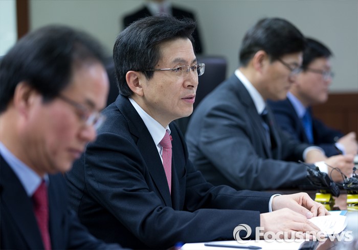 (서울=포커스뉴스) 21일 오후 서울 중구 한화 본사를 방문한 황교안 국무총리가 노동개혁과 관련해 현장 노사와의 대화 시간을 갖고 있다.