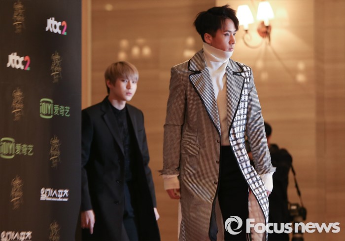 (서울=포커스뉴스) 21일 서울 동대문구 경희대학교 평화의 전당에서 열린 제 30회 골든디스크 시상식에 참석한 아이돌그룹 빅스의 멤버들이 포토타임을 위해 이동하고 있다.