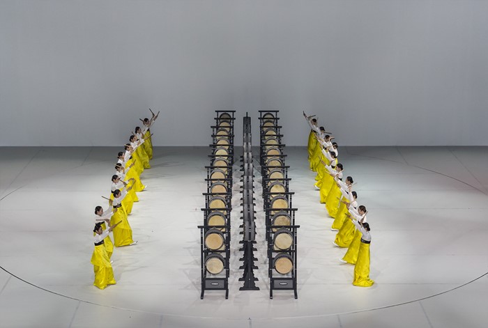 (서울=포커스뉴스) 20일 중국 베이징 21세기극장에서 열린 2016년 한국관광의 해 개막행사에서 정구호 감독이 한국의 전통 춤을 현대적 감각으로 재창조한 국립무용단의 ‘향연(饗宴)’ 공연이 펼쳐지고 있다. <사진제공=문화체육관광부>