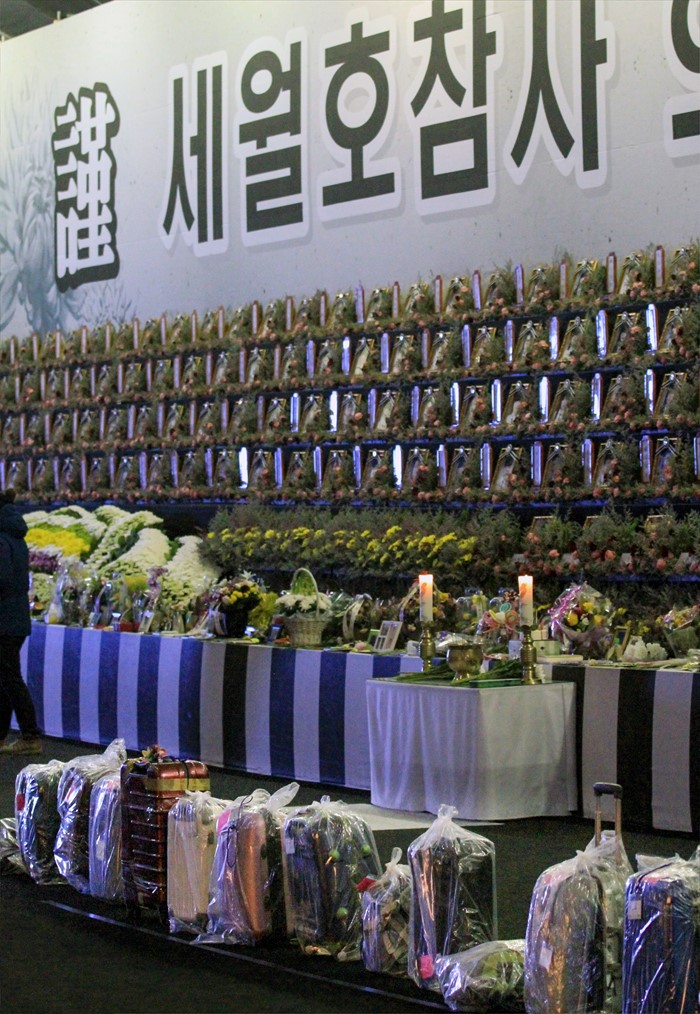 (서울=포커스뉴스) 21일 오후 경기 안산시 단원구 세월호 참사 희생자 정부 합동분향소에 세월호 희생자들의 유품·유류품이 놓여 있다.