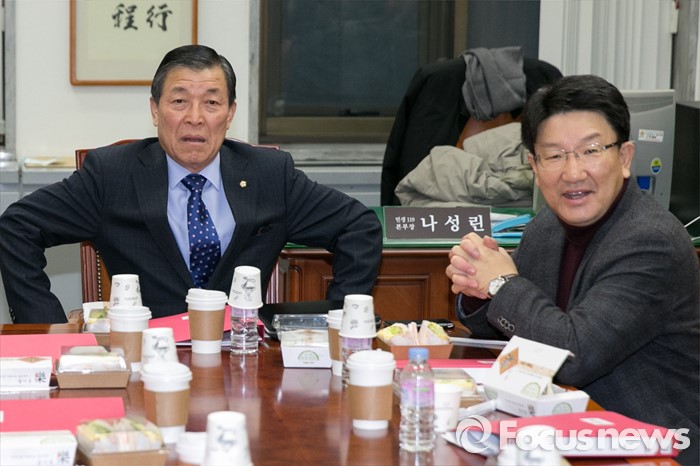 (서울=포커스뉴스) 새누리당 총선기획단장인 황진하(왼쪽) 사무총장과 간사인 권성동 전략기획본부장이 22일 오전 서울 여의도 국회에서 열린 총선기획단 2차 회의에 참석해 자리에 앉아 있다.