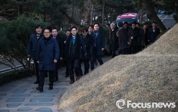 (서울=포커스뉴스) 더불어민주당 탈당을 예고한 박지원 전 원내대표가 22일 오전 서울 동작구 국립서울현충원 故 김대중 전 대통령 묘역에 들어서고 있다.