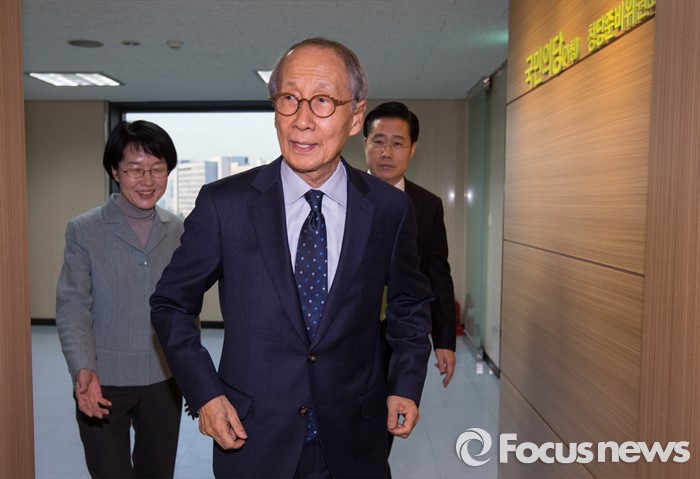 (서울=포커스뉴스) 국민의당(가칭) 창당준비위원회 공동 위원장직을 수락한 후 2주 만에 모습을 드러낸 윤여준 전 장관이 22일 오전 서울 마포구 국민의당 당사로 들어서고 있다.