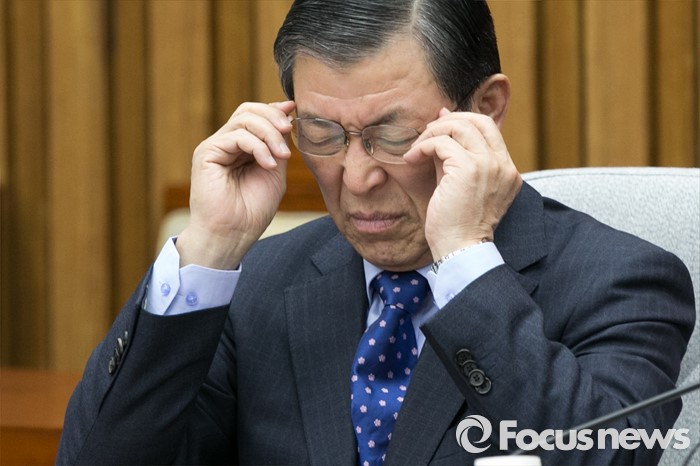 (서울=포커스뉴스) 새누리당 총선기획단장인 황진하 사무총장이 22일 오전 서울 여의도 국회에서 열린 원내대책회의에 참석해 안경을 고쳐쓰고 있다.