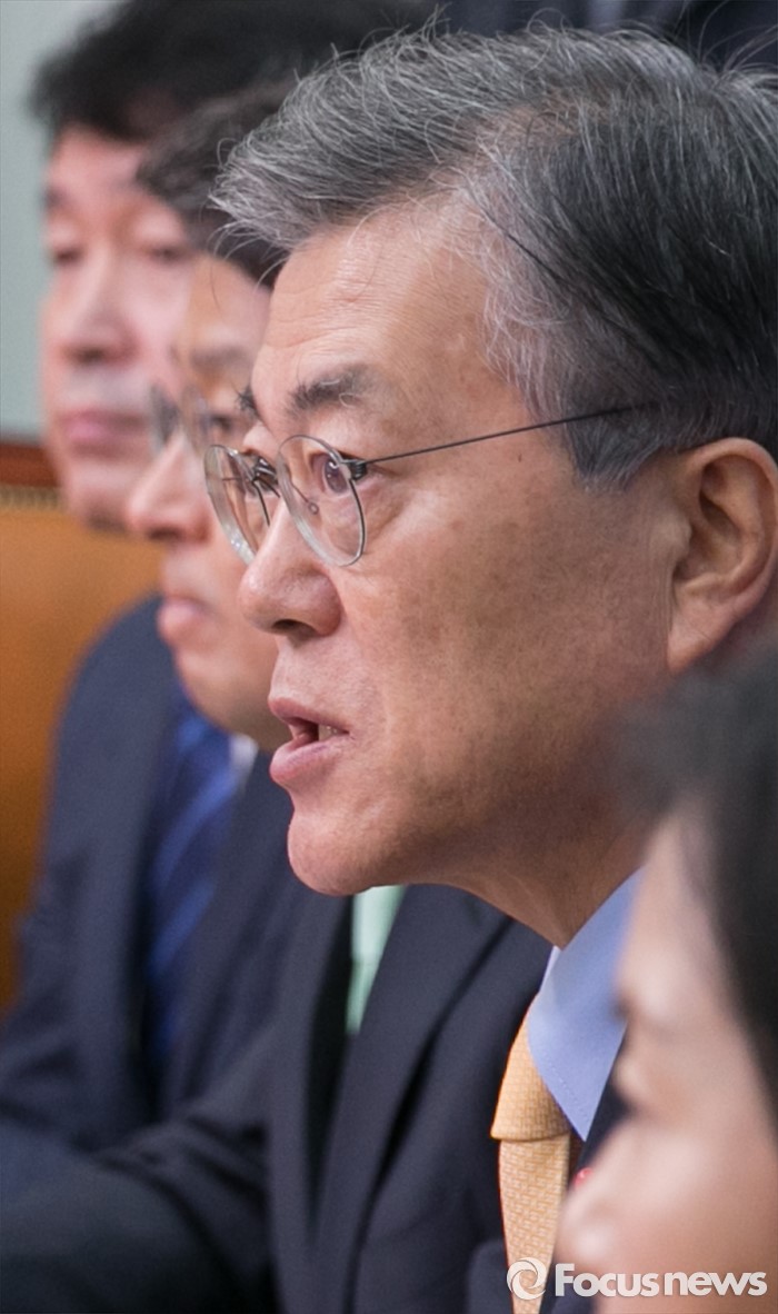 문 대표는 "박 대통령은 현실인식이 없다"며 "현실을 너무 모른다. 다른 세상에 사는 분 같다"고 비난했다.21일 오전 서울 여의도 국회에서 열린 더불어민주당 뉴파티특별위원회 출범 회의에 참석한 문재인 대표가 인사말을 하고 있다. 2016.01.21 박동욱 기자