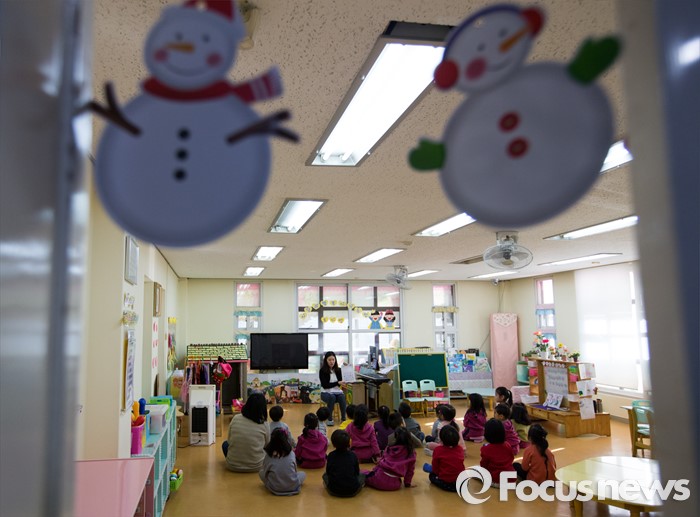 (서울=포커스뉴스) 22일 오전 서울 용산구 일민유치원에서 어린이들이 수업을 받고 있다.