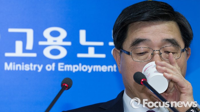 (세종=포커스뉴스) 이기권 고용노동부장관이 22일 오후 세종시 정부세종청사 보건복지부 브리핑룸에서 '일반 해고' 및 '취업규칙 변경요건 완화' 등 양대 지침에 대한 최종안 발표중 목을 축이고 있다.
