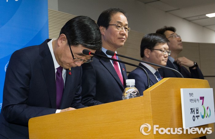 (세종=포커스뉴스) 이기권 고용노동부장관이 22일 오후 세종시 정부세종청사 보건복지부 브리핑룸에서 '일반 해고' 및 '취업규칙 변경요건 완화' 등 양대 지침에 대한 최종안 발표를 앞두고 인사를 하고 있다.