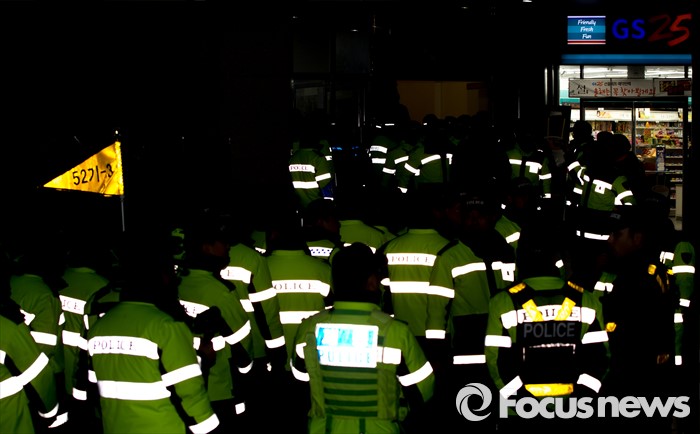 (서울=포커스뉴스) 22일 오후 서울 중구 서울고용노동청을 민원실을 알바노조가 점거, 경찰이 민원실로 진입하고 있다. 알바노조 조합원 100여명은 근로감독관 일처리 개선을 촉구하며 노동청을 기습 점거했다.