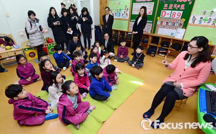 서울시교육청은 “서울시의회에서 삭감돼 재의를 요구한 상태인 유아학비 예산 2521억원도 조속히 통과시켜 줄 것을 시의회에 요청하고 있다”면서 “누리과정 예산 문제의 근본적인 해결을 위해 정부가 어린이집 누리과정 예산을 조속히 국고로 지원할 것을 다시 한 번 강력히 촉구한다”고 밝혔다.(서울=포커스뉴스) 이준식 사회부총리 겸 교육부장관이 지난 22일 오전 서울 용산구 일민유치원을 찾아 학부모, 보육 관계자 등과 간담회를 열기 전 수업을 참관하고 있다. 2016.01.22 오장환 기자