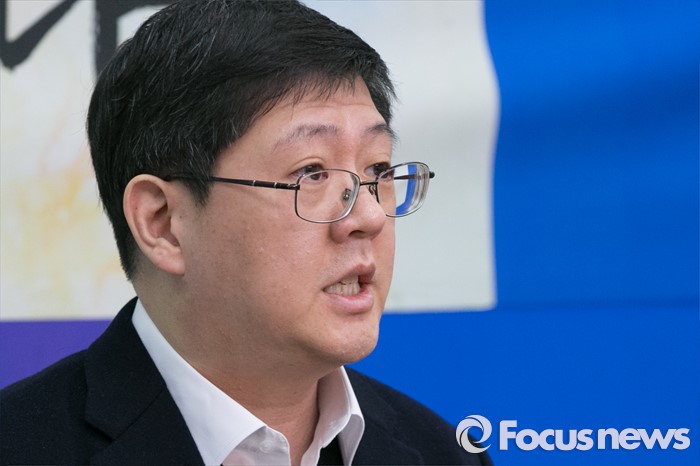 (서울=포커스뉴스) 김대중 전 대통령의 삼남 김홍걸 연세대 김대중 도서관 객원교수가 24일 오전 서울 여의도 국회 더불어민주당 당대표실에서 입당 기자회견을 하고 있다.