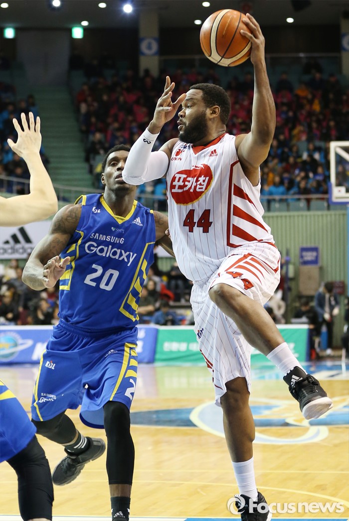 (서울=포커스뉴스) 24일 서울 잠실실내체육관에서 열린 2015-2016 프로농구 삼성-오리온 경기에서 오리온 제스퍼 존슨이 드라이브인을 시도하다 외곽으로 패스하고 있다.