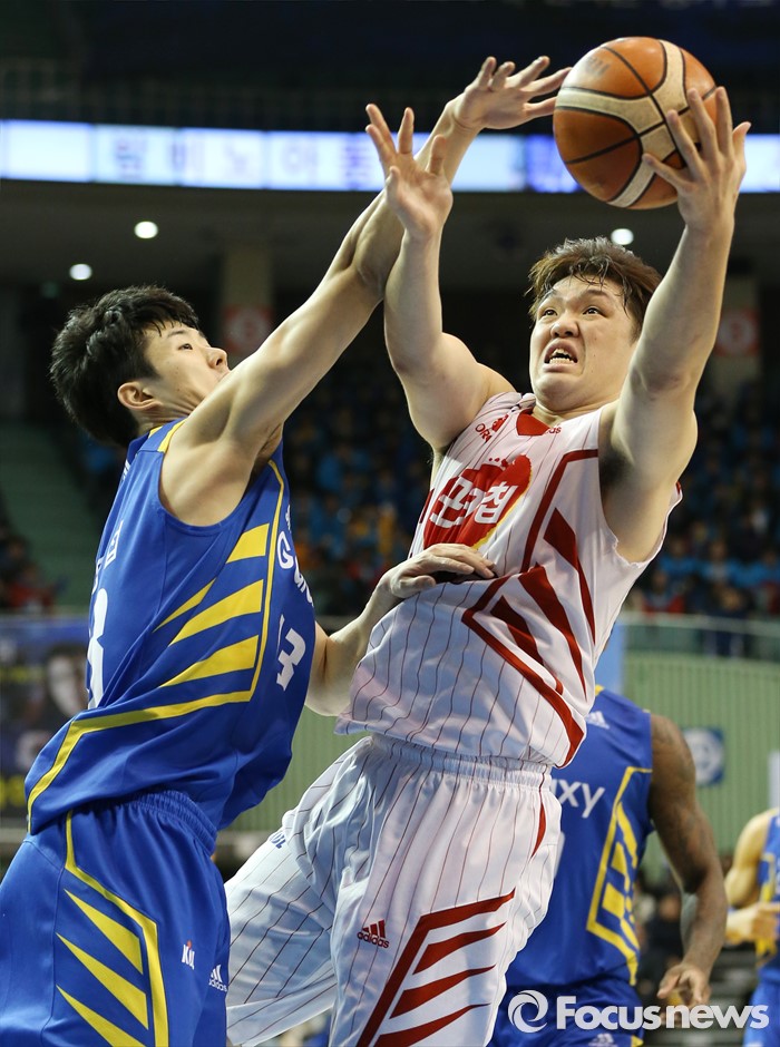 (서울=포커스뉴스) 24일 서울 잠실실내체육관에서 열린 2015-2016 프로농구 삼성-오리온 경기에서 오리온 이승현이 삼성 임동섭의 마크를 제치며 레이업슛을 시도하고 있다.