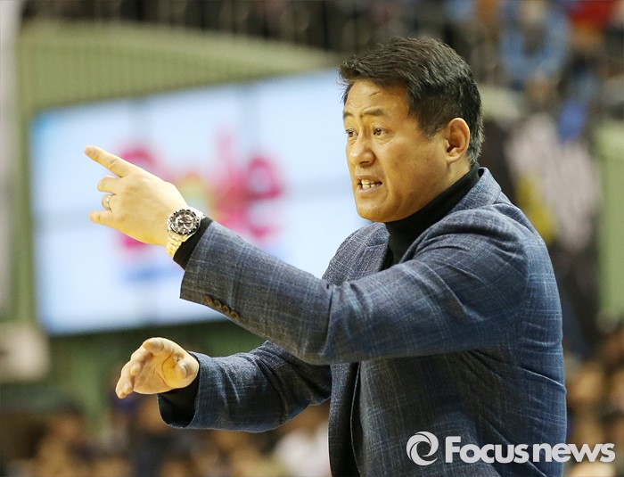 (서울=포커스뉴스) 24일 서울 잠실실내체육관에서 열린 2015-2016 프로농구 삼성-오리온 경기에서 추일승 오리온 감독이 강한 표정으로 선수들에게 작전을 지시하고 있다.
