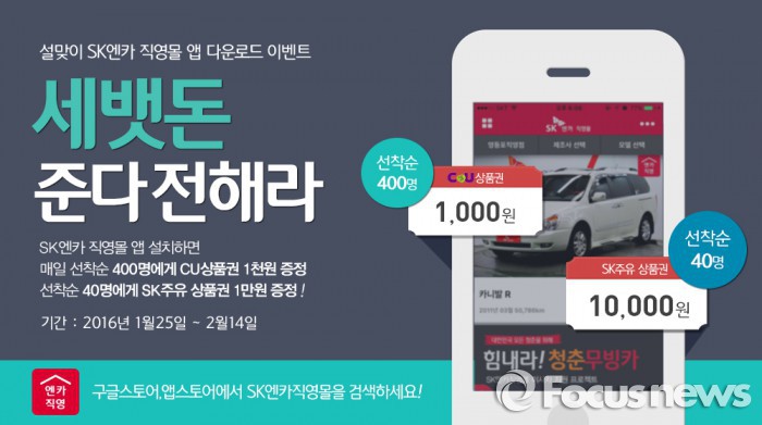 (서울=포커스뉴스) 중고차 매매 기업 SK엔카직영은 설을 맞아 매장을 방문하는 고객에게 주유비 1만원을 증정한다.
