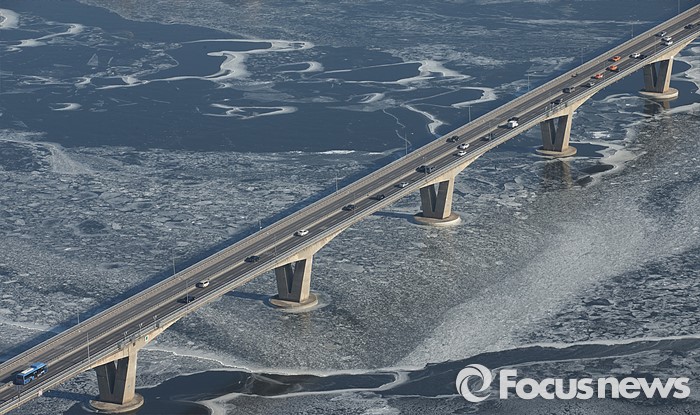 (서울=포커스뉴스) 연일 강추위가 계속되고 있는 25일 오전 서울 영등포구 63빌딩에서 바라본 한강 일대가 얼어붙어 있다.