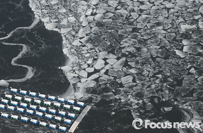 (서울=포커스뉴스) 연일 강추위가 계속되고 있는 25일 오전 서울 영등포구 63빌딩에서 바라본 한강 일대가 얼어붙어 있다.