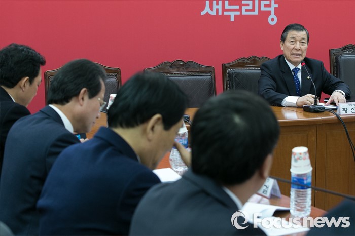 (서울=포커스뉴스) 황진하(오른쪽) 새누리당 사무총장이 25일 오후 서울 여의도 새누리당사에서 열린 전국 시도당위원장회의에 참석해 모두발언하고 있다.