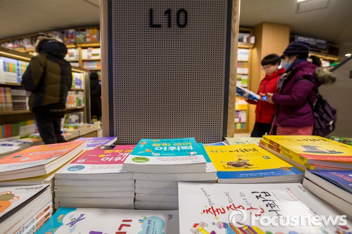 (서울=포커스뉴스) 서울 한 낮 기온이 영하권에 머물며 연일 강추위가 이어지고 있는 25일 오후 서울 종로구 교보문고 광화문점에서 개학을 앞둔 중고생들과 학부모들이 참고서를 보고 있다.